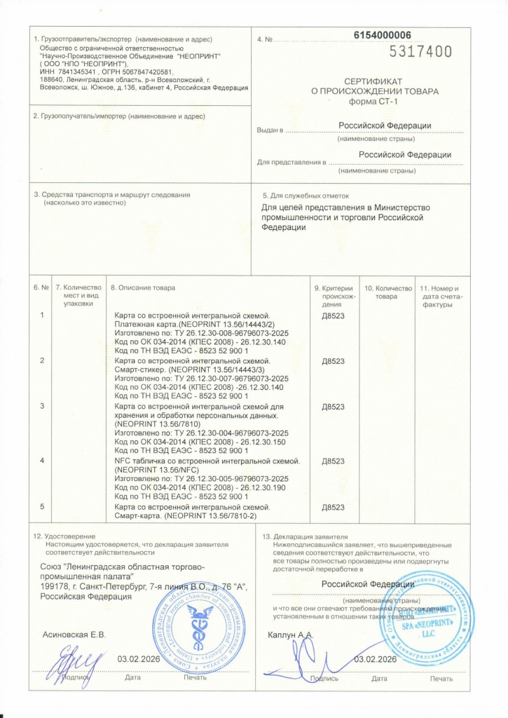 Компания ООО «НПО «НЕОПРИНТ» объявляет о включении своей продукции в Единый реестр российской радиоэ...
