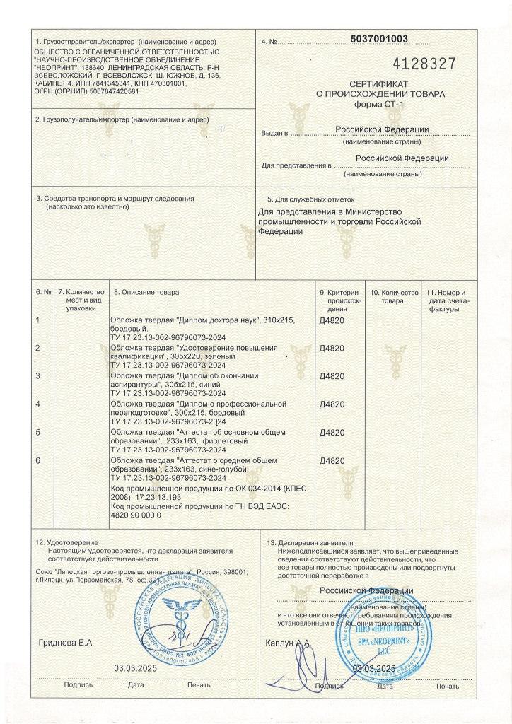 Продукция ООО «НПО «НЕОПРИНТ» включена в реестр РЭП Минпромторга России